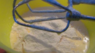 • На тънка струйка добавих олиото и млякото като бъркането с миксер продължава.