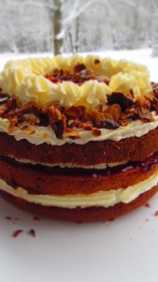 • Тортата се оставя минимум за 2 часа на студено или докато се стегне масления крем и блатовете поемат от конфитюра.