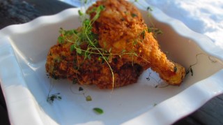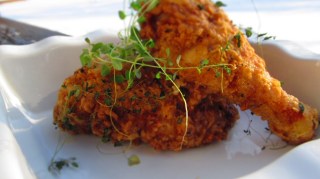 Сервирам хрупкавото пържено пиле по южняшки горещо.