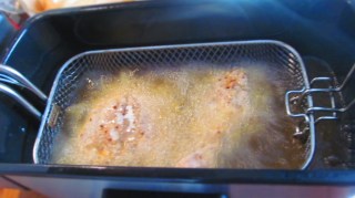 - Изпържих за около 4 минути, но две по две пилешките бутчета в предварително загрят до 180 градуса фритюрник. Ако не разполагате с такъв – изсипвате достатъчно олио в дълбока тенджера и пържите бутчетата само за около 5 минути или до златист цвят.