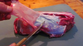 - С помощта на остър нож премахнах ципата-жила, покриваща месото. Костта оставих. Тя дава допълнителен вкус на бульона.