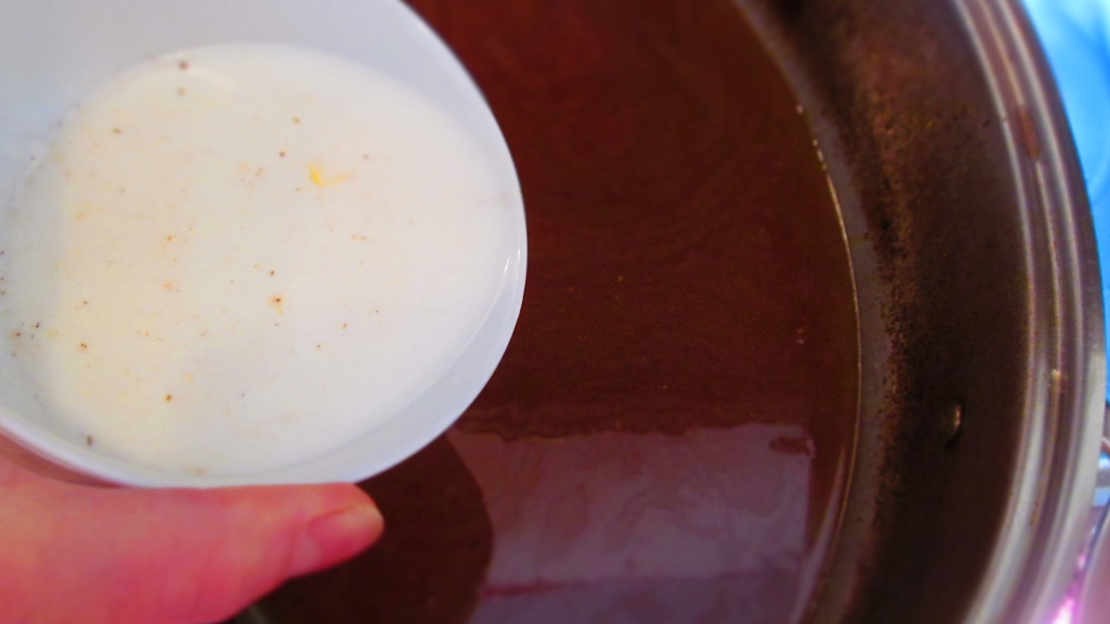- Разтворих нишестето в малко вода и добавих с разбъркване към гладкия бульон. Върнах в горещата фурна, докато сосът получи нужната гъстота.