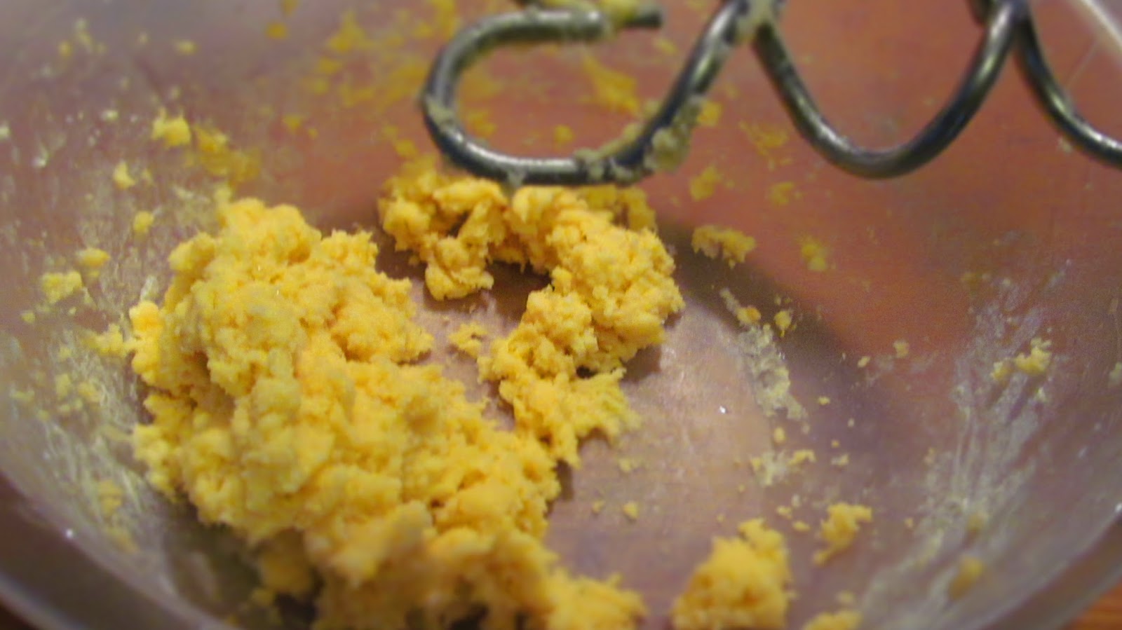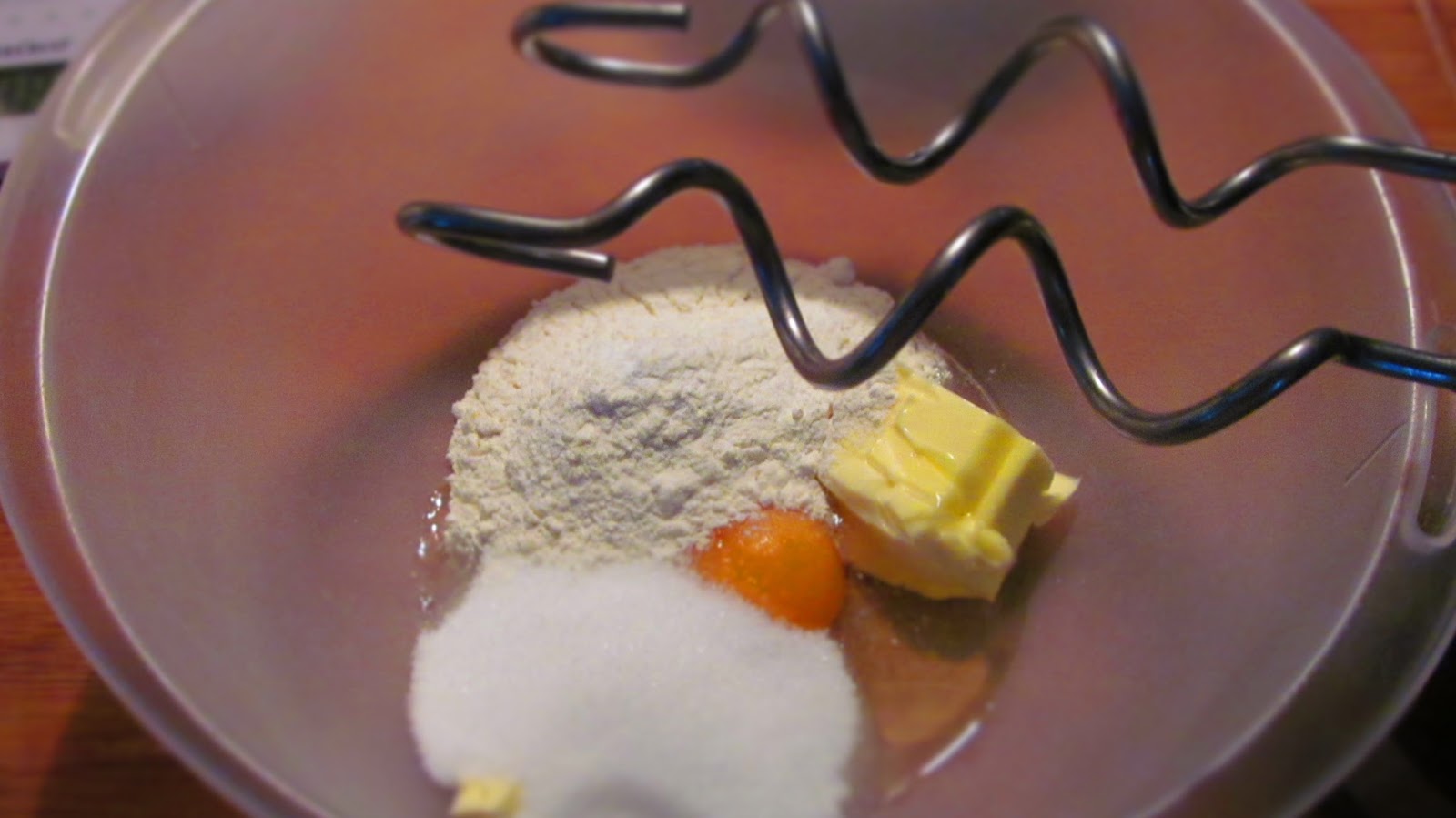 - Започвам с масленото тесто. В купа слагам всички продукти за него и с помощта на миксер и накрайниците за месене разбърквам до получаването на трохи.