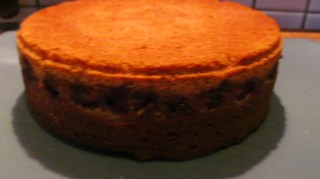 - Много внимателно похлупвам сладкиша и отделям дъното на формата. Това остава и крайната позиция на тортата.