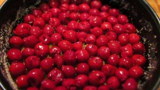 - Подреждам добре отцедените от сока череши и оставям за кратко в хладилника, докато приготвя следващото тесто.