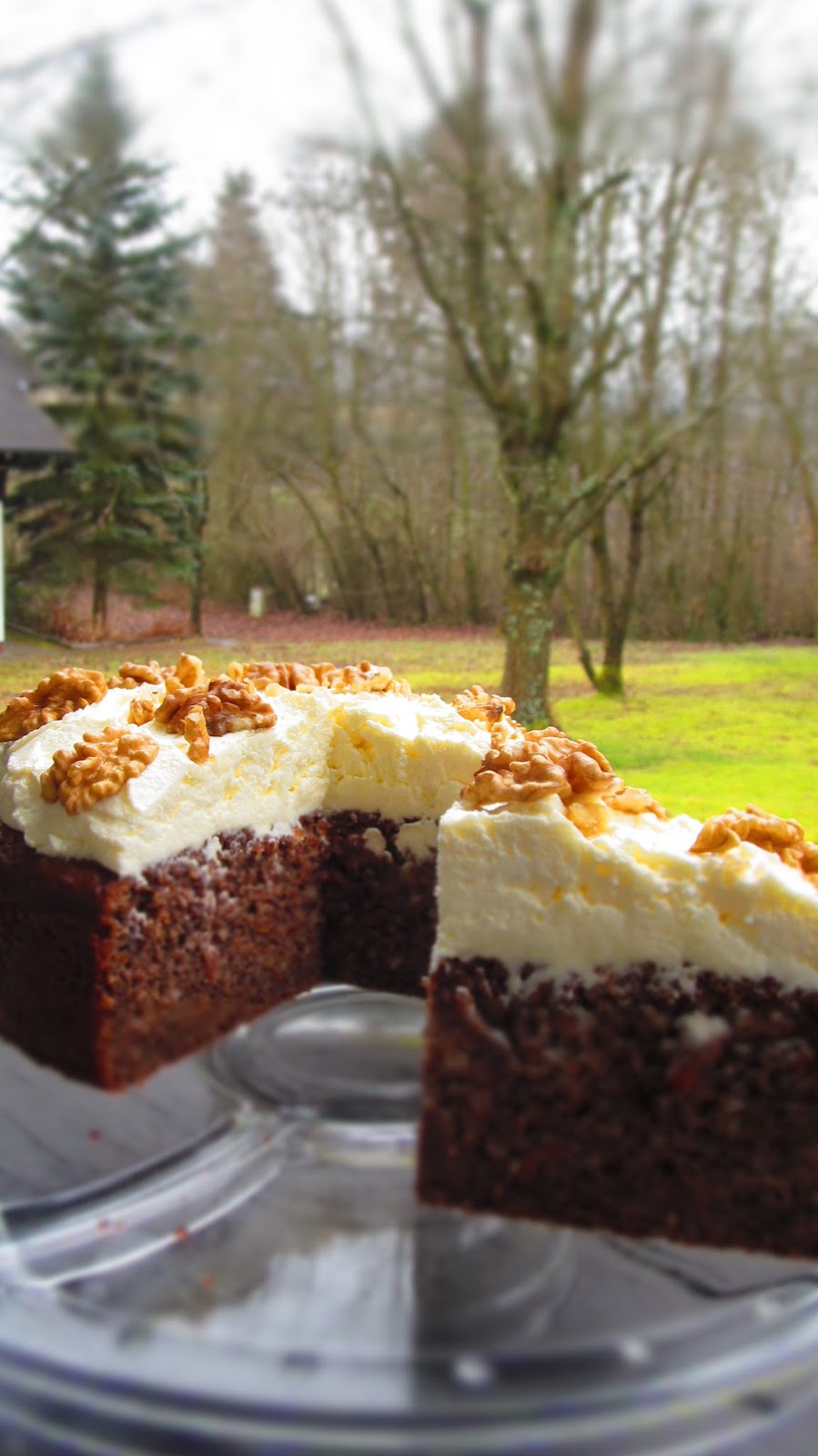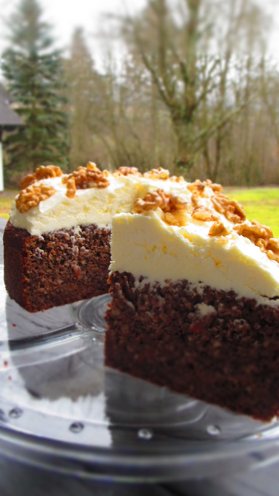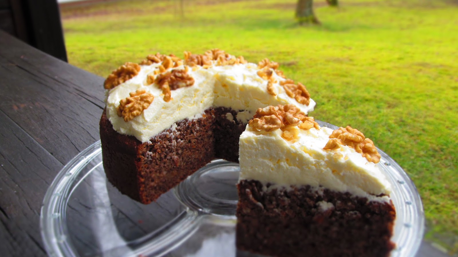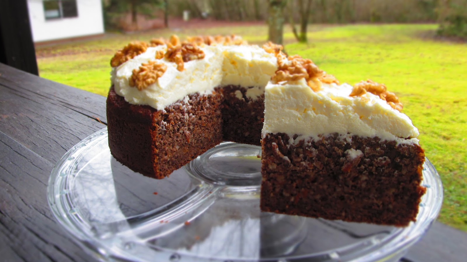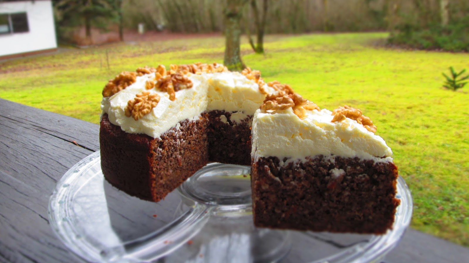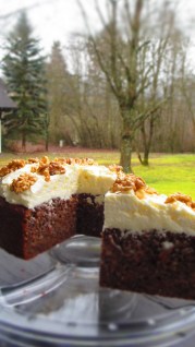 Това е един сладкиш със стандартната комбинация от ябълки, орехи и бадеми. Но има присъствие в тестото на моркови и прясно изцеден сок от портокал, които дават допълнителна сочност и аромат. А вместо да бъде сервиран със задължителната за този тип сладкиши бита сметана, тук има един сочен крем от масло и крема сирене.