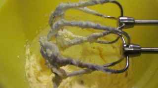 - Добавям разбитите белтъци и повече не работя с миксер, а използвам тел за разбиване. Получава се пухкаво кексово тесто.