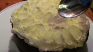 - Сладкишът е непретенциозен и затова намазваме небрежно с този крем повърхността на сладкиша. Не е нужно да се стараете, за да изглежда гладък и като под конец.