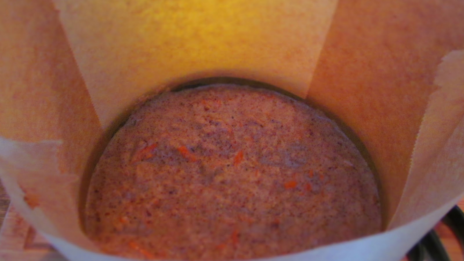 - Аз използвах форма за торта със подвижни стени с размер 20 см. и поради тази причина облепих стените с хартия за печене, която е и около 15 см. във височина. Така си спестих разочарованието да ми излезе тестото от малката форма. Така, че тези продукти са достатъчни и за форма с размер 22 см. За да залепне добре хартията намазах цялата форма първо с олио. Сложих хартия и на дъното на формата.