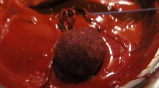 - Изваждам шоколадовата топка с вилица или тези специални вилици за направата на бонбони.
