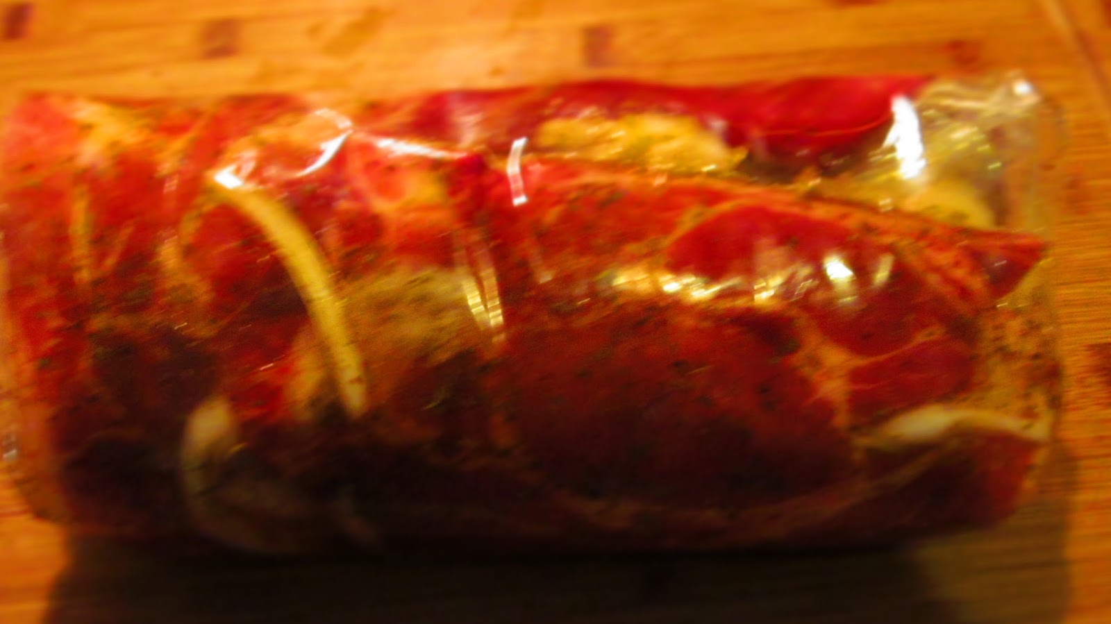 - Навивам пликчето на руло и прибирам в хладилника за 24 часа. Ето това взаимствах от немците. Тук приготвят по този начин традиционните Schwenkbraten, но подправките си направих по български.