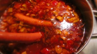 - По наше желание към края на готвенето добавих и цели наденички, колкото само и те да се сварят.