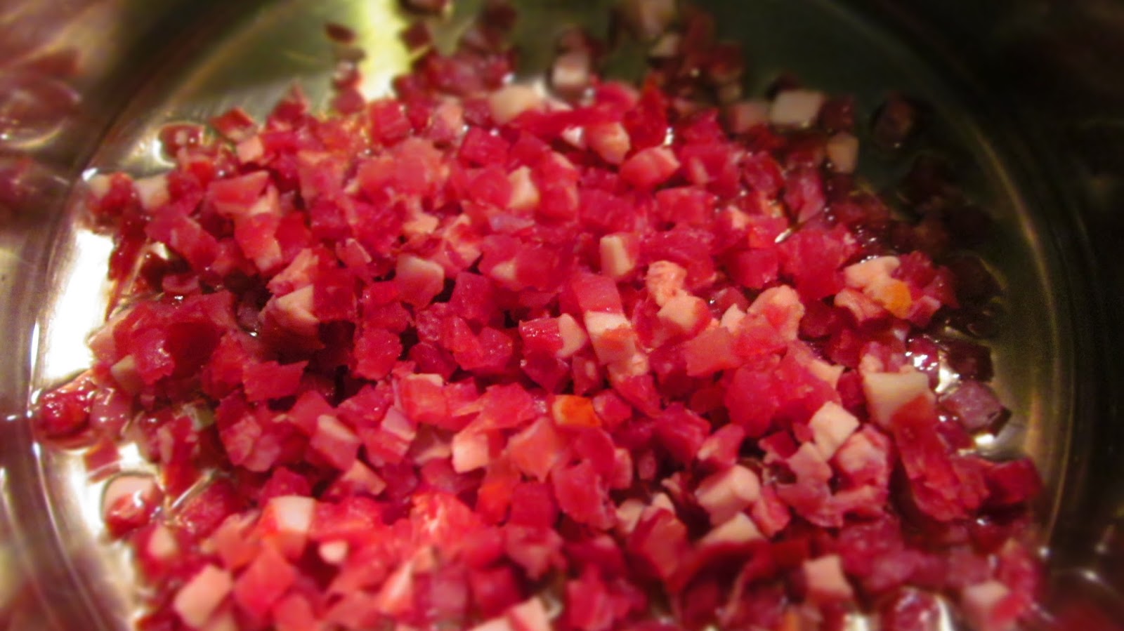 - Загрявам мазнината в дълбока тенджера и пускам бекона да се изпържи докато усетя приятното му ухание.