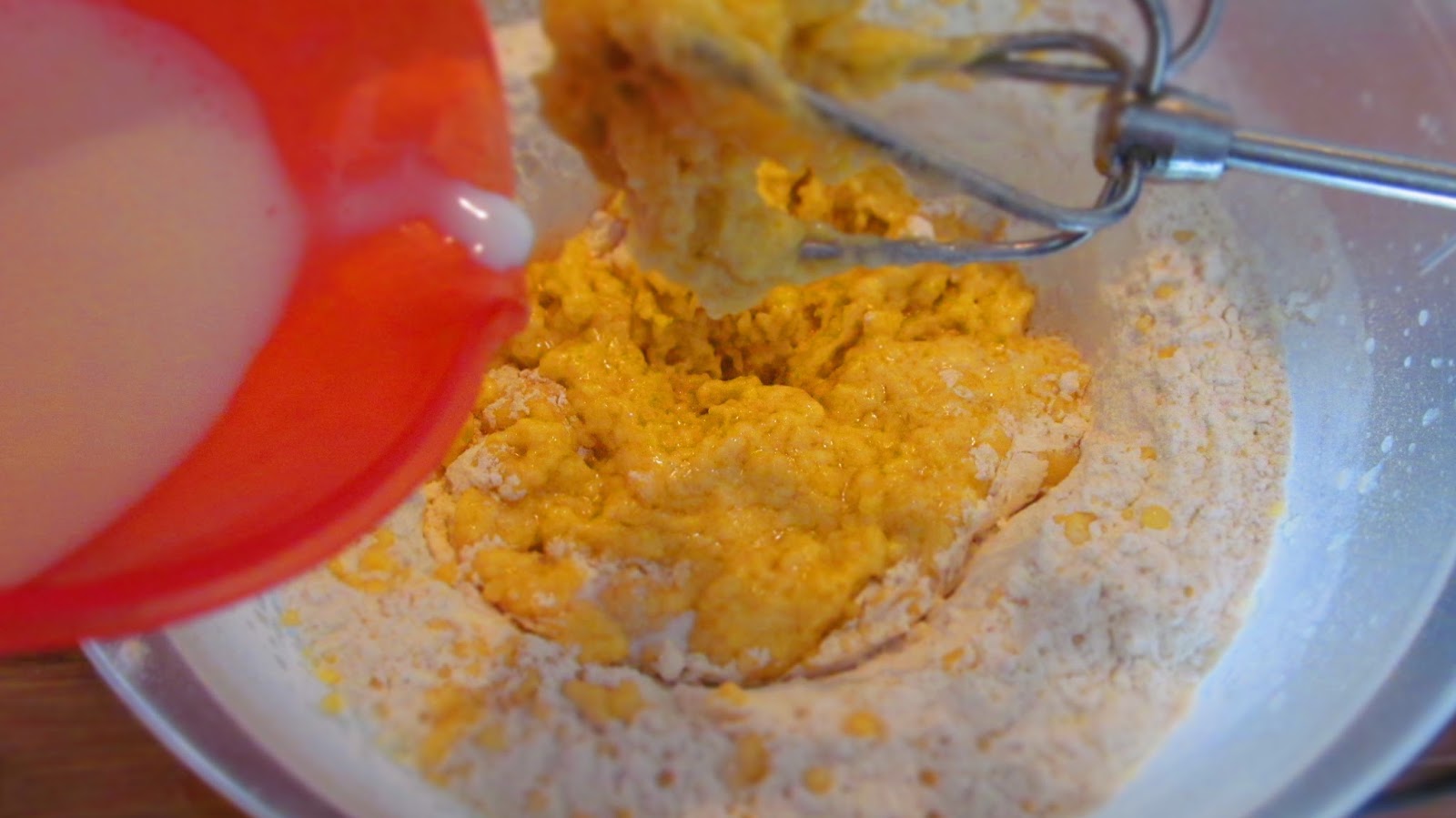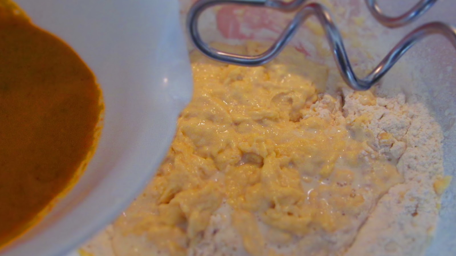 • Най-накрая добавям разтворения шафран и бъркам с накрайниците за тесто.