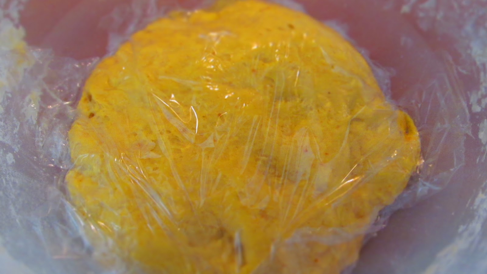 • Втасалото тесто омесвам за кратко на ръка върху НЕнабрашнена плоскост.