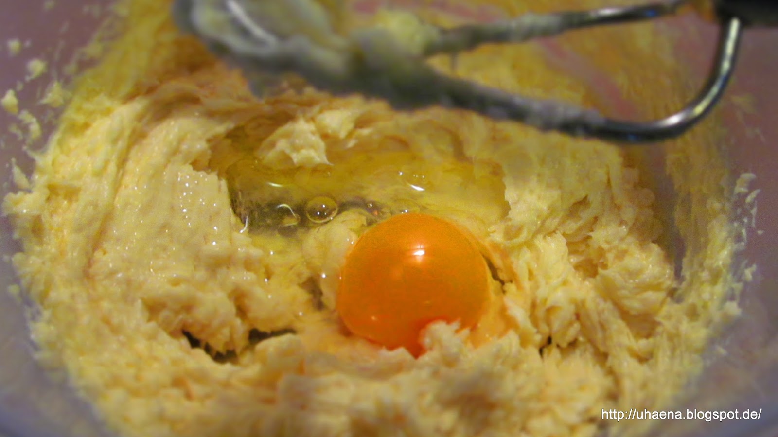 - Добавям първото яйце и разбивам отново с миксера. После добавям второто яйце и отново разбивам. Така продължавам до усвояването на всичките яйца и получаването на хубав крем.