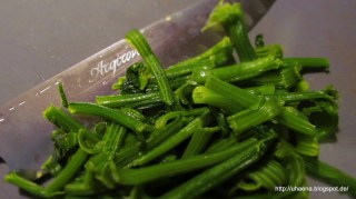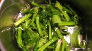 - В купа сипвам парченцата спаначени коренчета /дръжки/