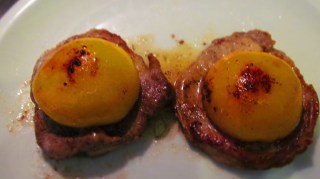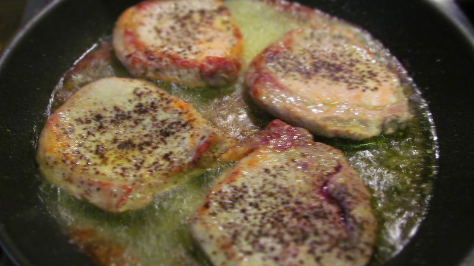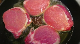 - Слагам прасковите за кратко в мазнината от стековете, колкото да се затоплят. Обръщам ги веднъж.
