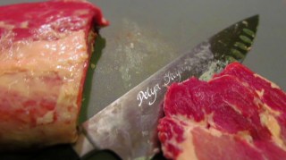 - Нарязвам филето на филии с дебелина около 1,5 – 2 см. На порция предвиждам по две филийки от филето.