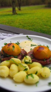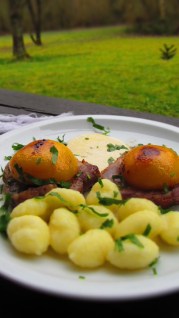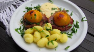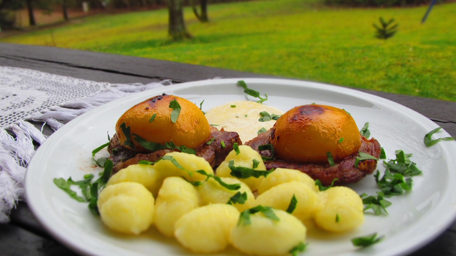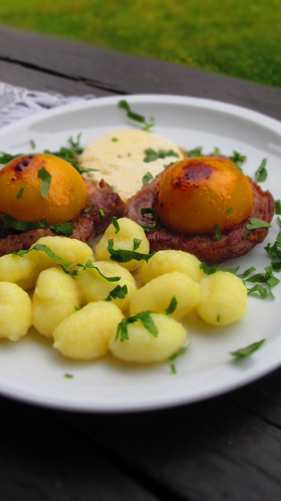 Ами …това е! Нетипично за България, но пък много вкусно! Научих тази комбинация тук – в Германия. Но…моля Ви! Пригответе я само, ако сте готови да експериментирате! Не искам да има после коментари, че прасковите са за десерт!