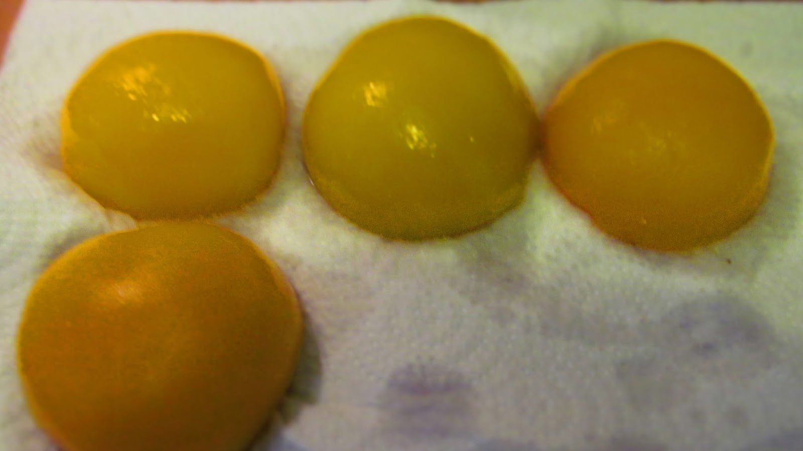 - Прасковите от компота са половинки, които първо изваждам върху домакинска хартия. Хубаво е да не са влажни, за да не пръскат при пърженето. Предвиждам по две половинки за порция.