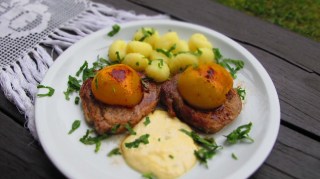 Тази комбинация на свинско филе с праскови от компот е за ценители!