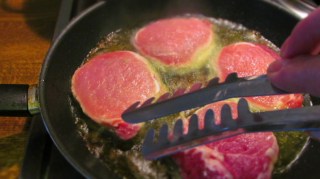 - За обръщането на стековете не използвам вилица, за да запазя соковете им. Използвам щипка.