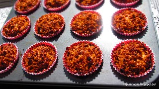•  С помощта на остър нож отрязвам тънки капачета от охладените мъфини. Това правя много внимателно, защото лешниковата коричка е доста твърда след печенето.