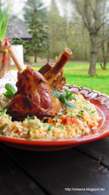 Разликата между рецептата за агнешки котлети с бял ориз и тази е, че тук джоланчетата реших първо да запечатам в тигана. Така те получиха невероятен цвят.