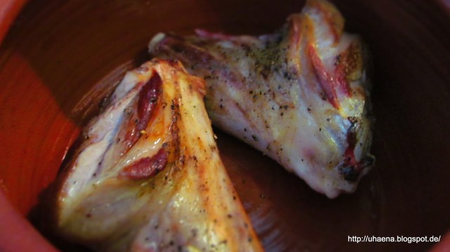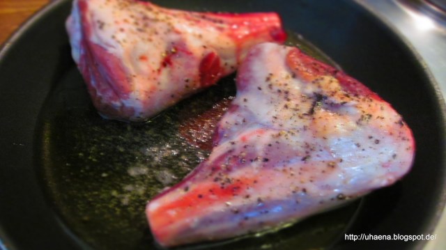 - Измих джоланчетата и поставих в купа. Много добре поръсих с прясно смлян черен пипер и залях с 2 с. л. от мазнината. Оставих в хладилника за около час.