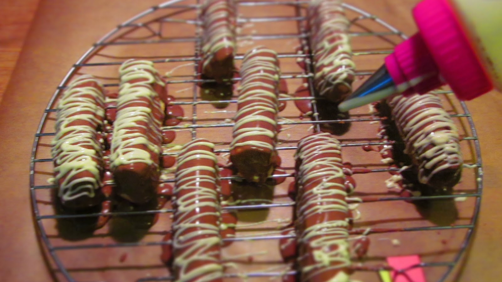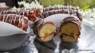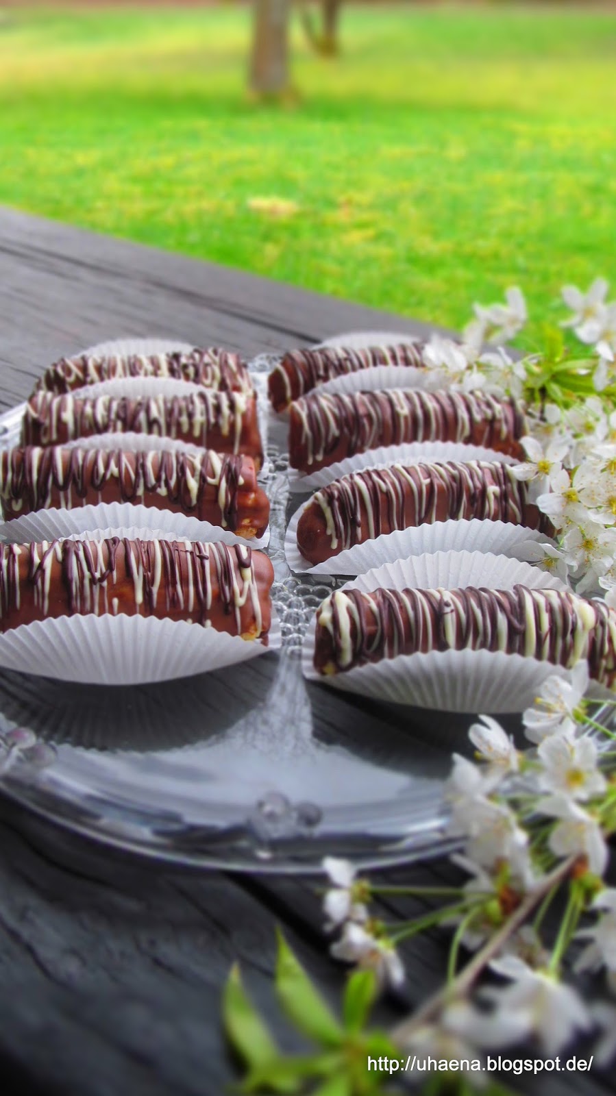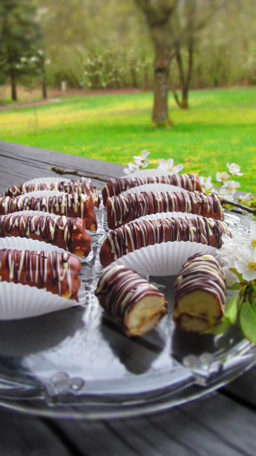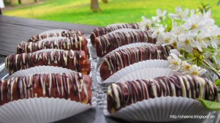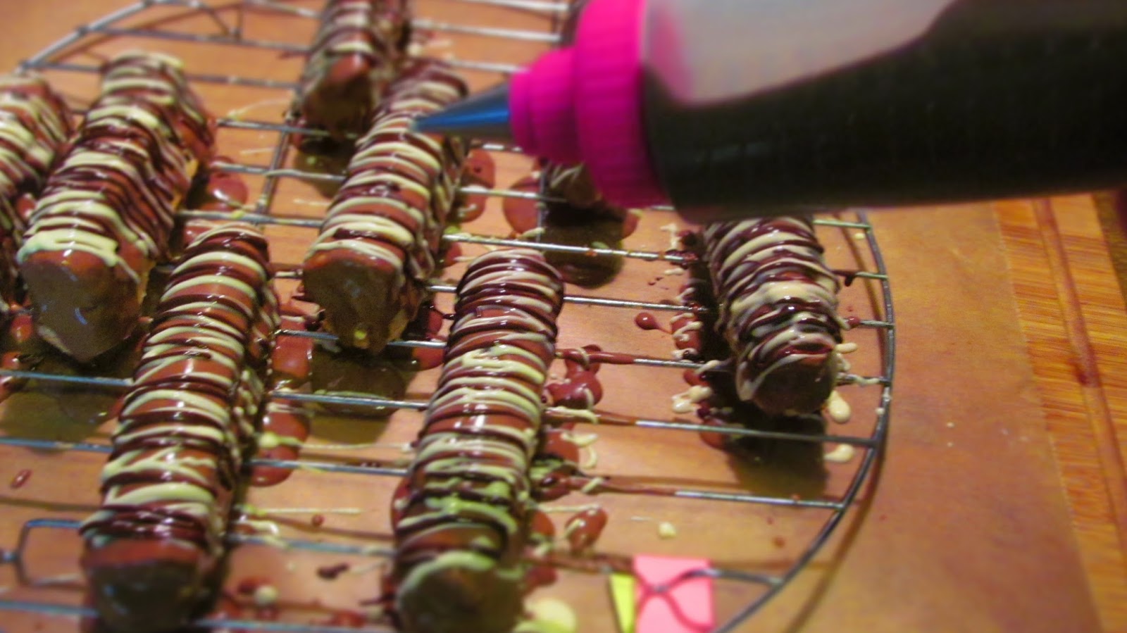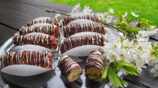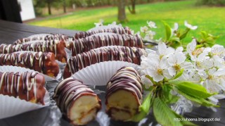 - С помощта на лъжичка полях обилно банановите еклери. Стараех се да са напълно покрити с шоколад.