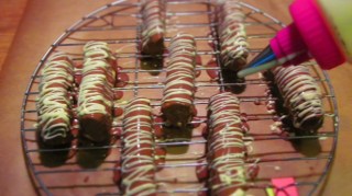 - С черния шоколад направих също множество черти за декоарция върху еклерите.