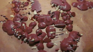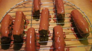 - Оставих излишното количество шоколад да се стече върху хартията за печене, която бях постлала под решетката.
