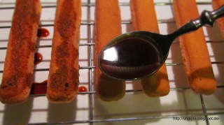 - Подредих бишкотите върху решетка, като е нужно захарната им страна да е отгоре, за да не се обръщат от тежестта на банана.