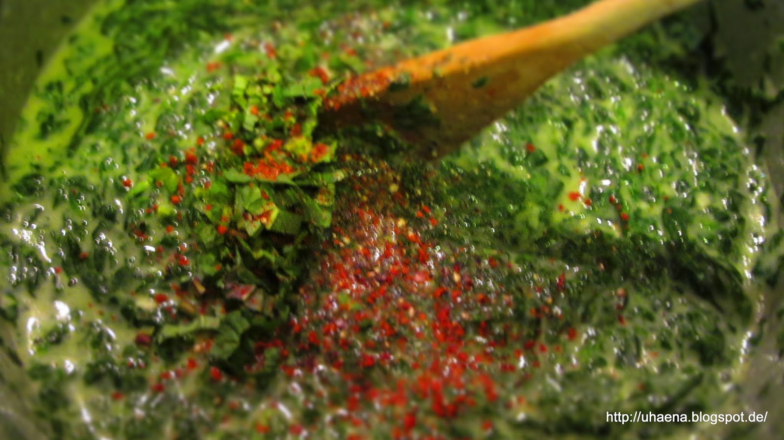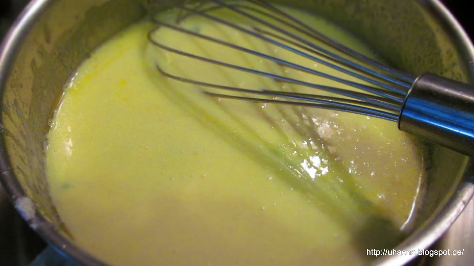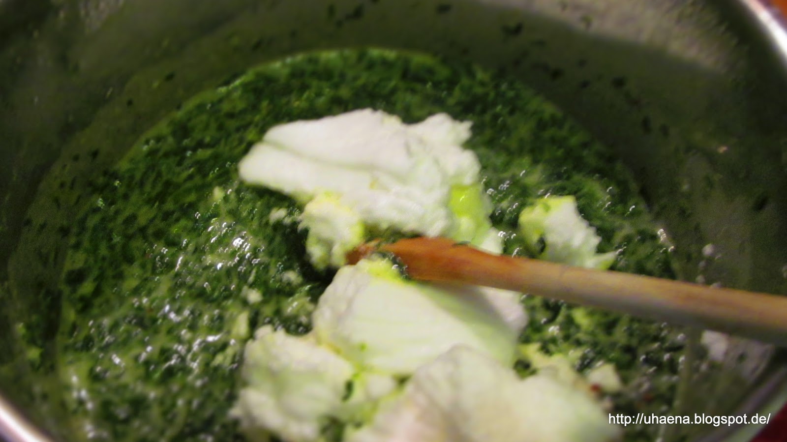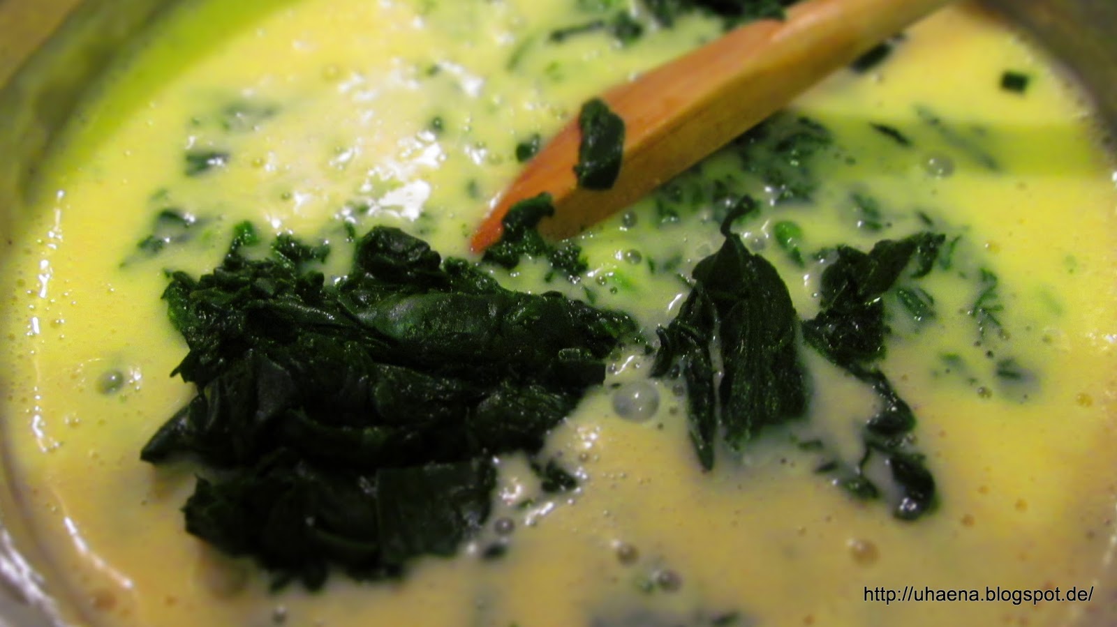 • Добавям към маслото прясното мляко и една чаша от водата, в която е врял спанакът. Разбърквам непрекъснато.