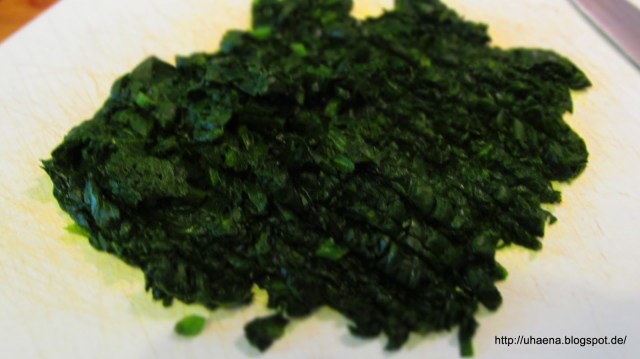 • Отцеждам сварения спанак, охлажам и нарязвам на ситно. Запазвам част от водата, в която е врял спанакът.