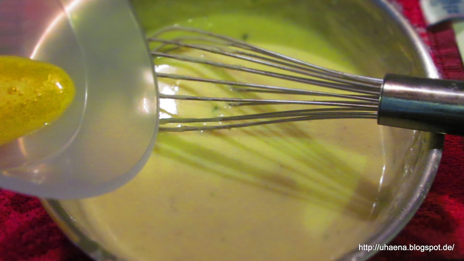 • Разбивам леко жълтъците и добавям на тънка струйка и с постоянно разбъркване към охладения сос.