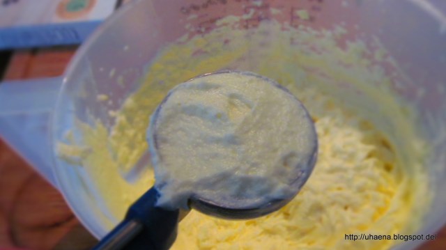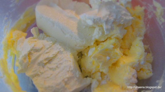 - Добавям на два пъти сиренето, като разбивам с миксер. Важно е сиренето също да е със стайна температура, за да не се пресече топлото масло.