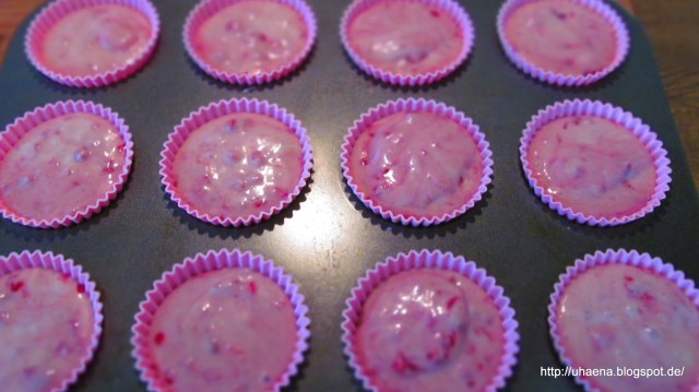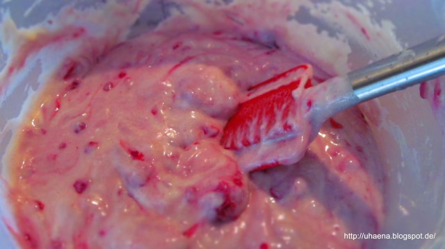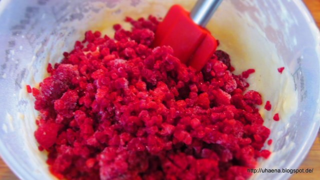 - Добавям малините към тестото. Моите малини не бях съвсем размразени.