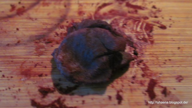 - През това време омесвам марципана с какаото, докато се получи тъмно-кафява марципанова маса.