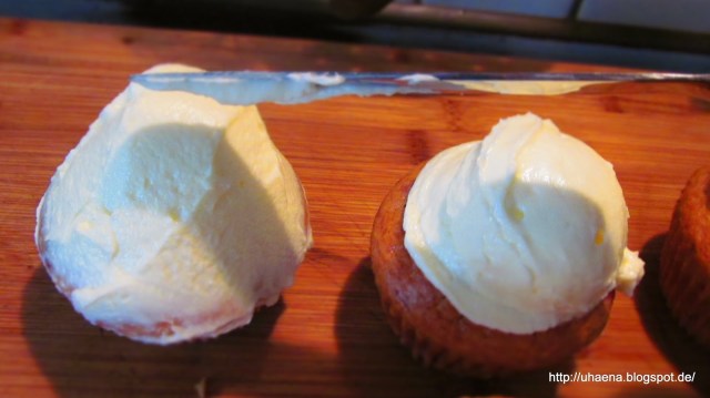 - С помощта на нож заглаждам така крема, че да се слее с ръбчето на мъфина.