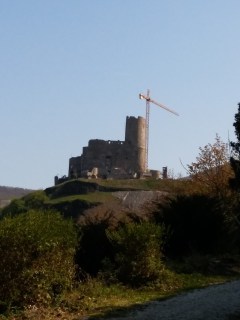 Горди от покоряването на Olymp и леко поотдъхнали се спуснахме отново през гората до руините на Landshut Burg.