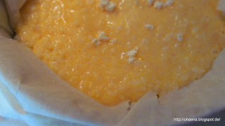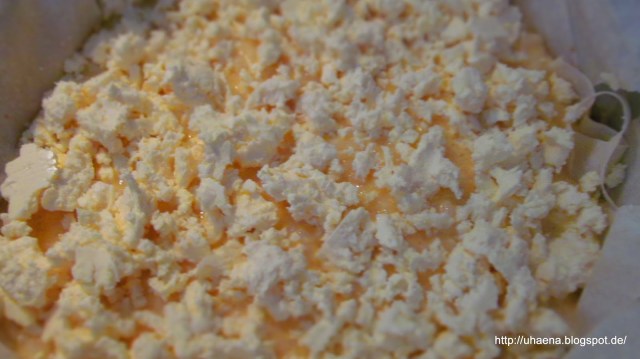 • Цялата оризово-яйчена смес изсипах върху сиренето.