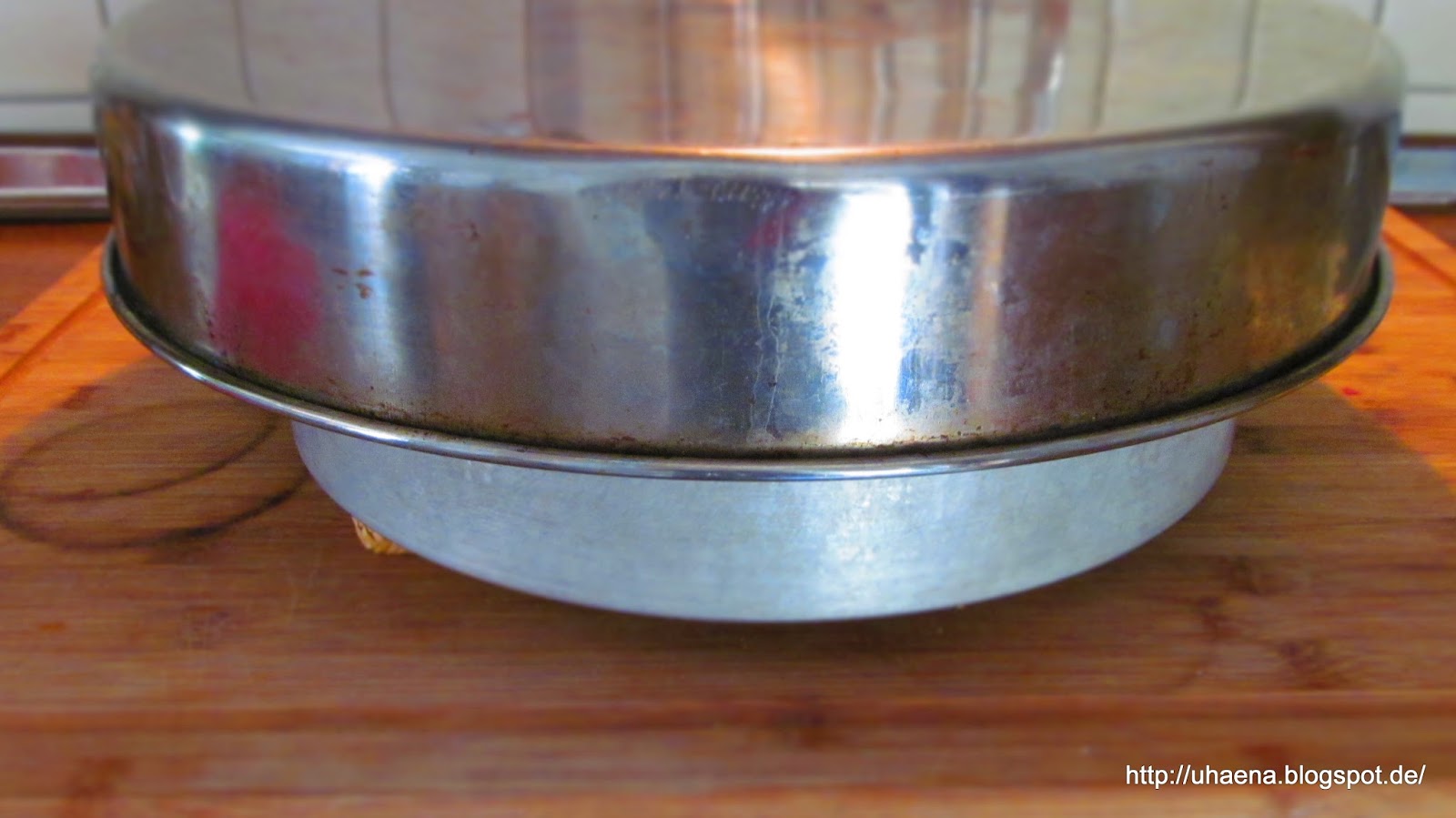• Извадих баницата от фурната и покрих отгоре със втора тава. Много внимателно и с предпазни ръкавици /пазете се от изгаряния/ обърнах баницата във втората тава.