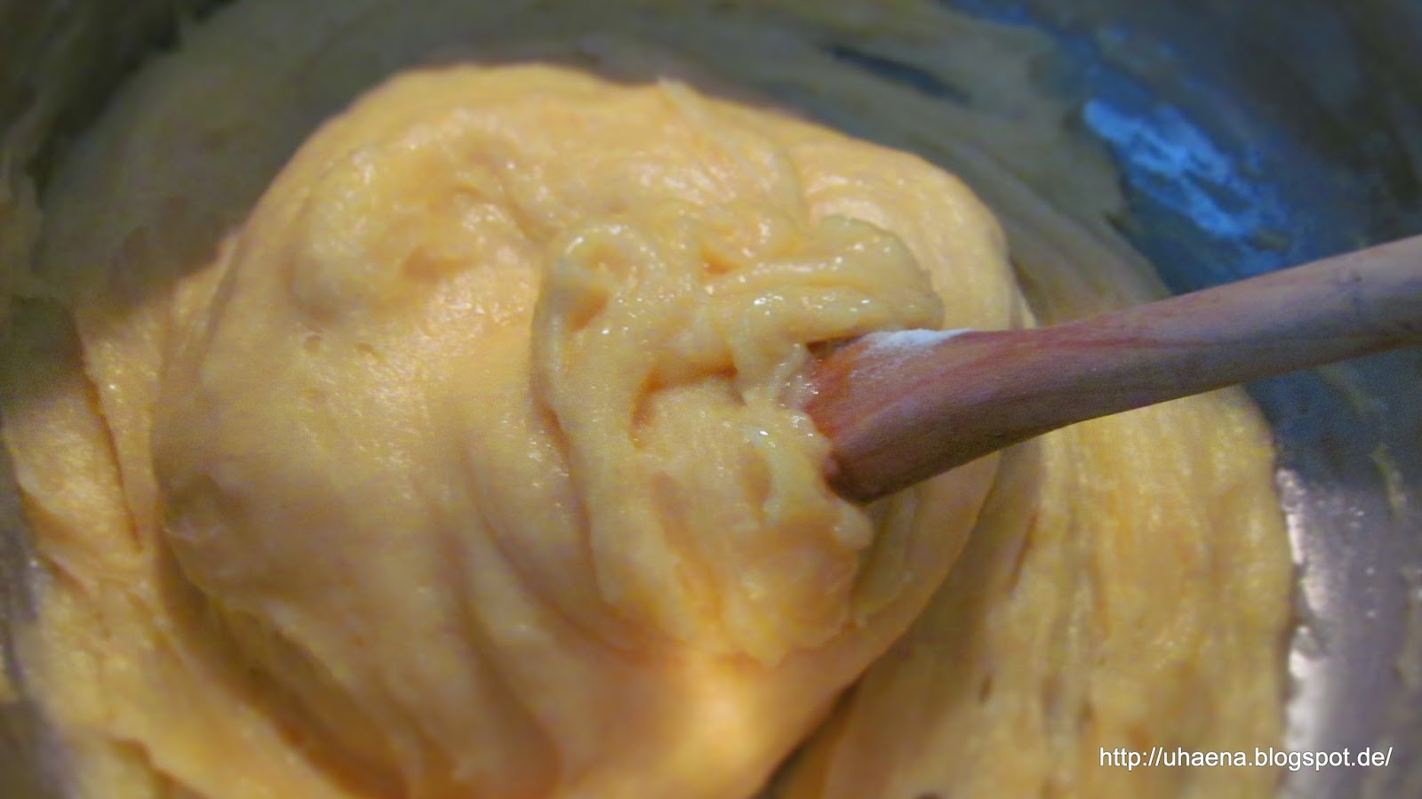 - Добавям едно по едно яйцата към леко охладеното тесто и разбърквам с дървената лъжица до получаването на гладко тесто.