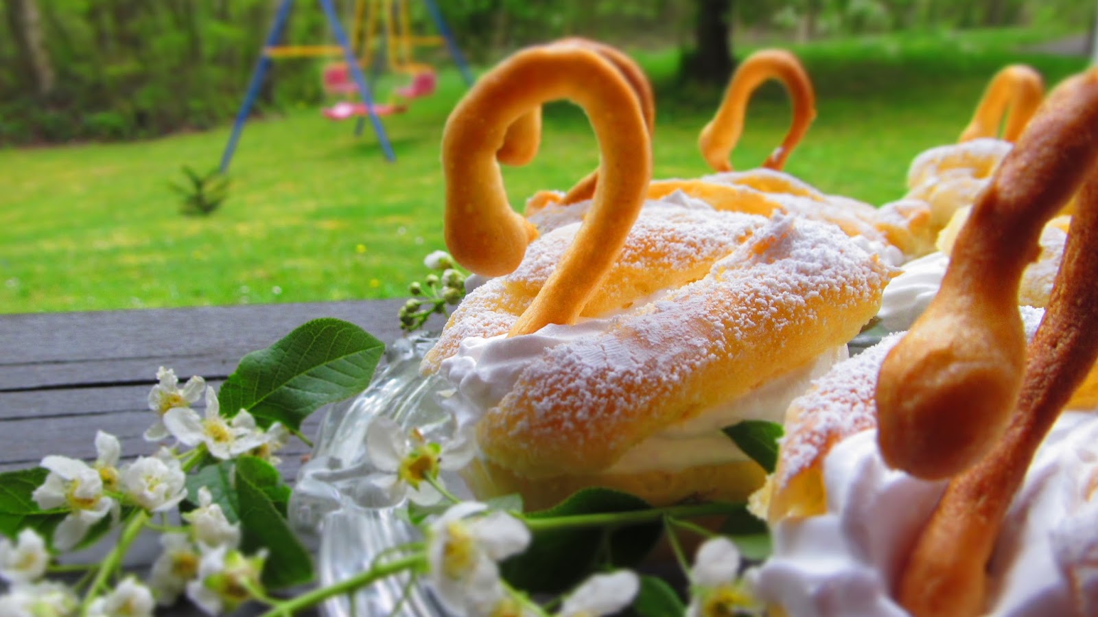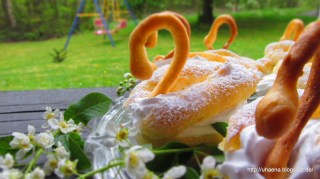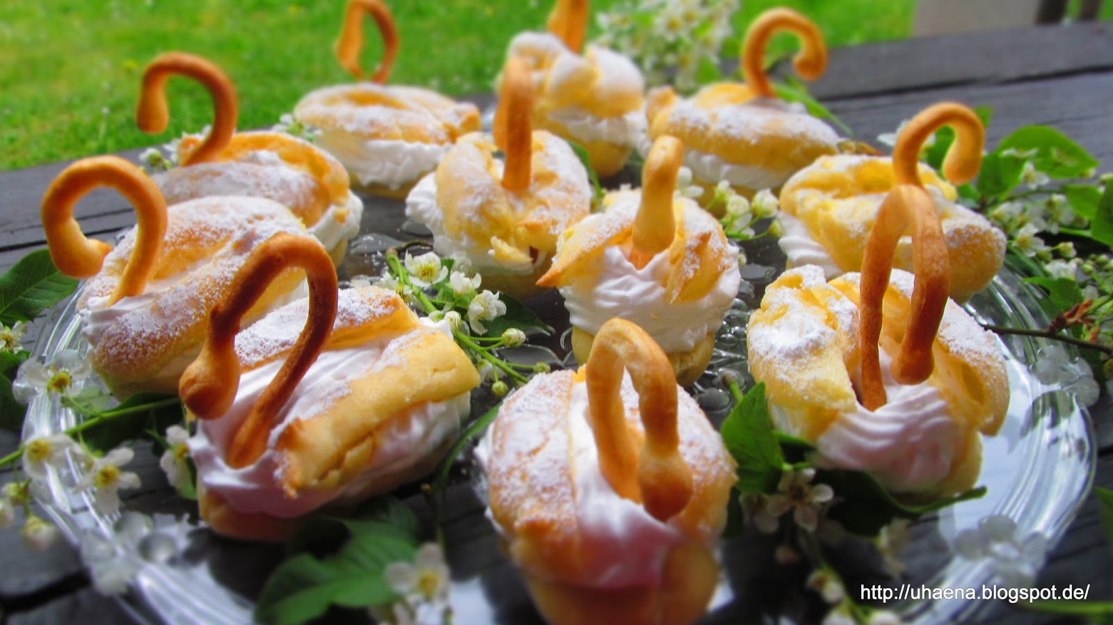 - Охлаждам готовите еклери и през това време изпичам за около 10 минути шиите на лебедите.