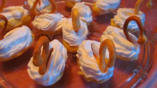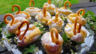 - Самите крилца залепям с леко притискане върху сметаната и около шията на лебеда.