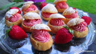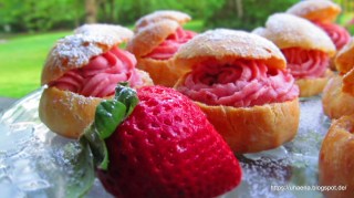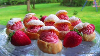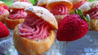 Ние вече сме приготвяли подобни сладки, а именно ефектните Лебеди от варено тесто, чиято рецепта ще откриете ето тук. Принципът е същия! Само кремът, с който днес напълних моите облачета е от пресни ягоди.
