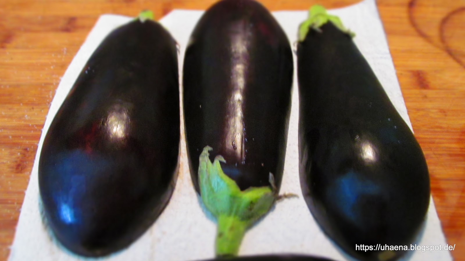 - Измивам патладжаните и разрязвам по дължина всеки на две половини като оставям дръжките също.