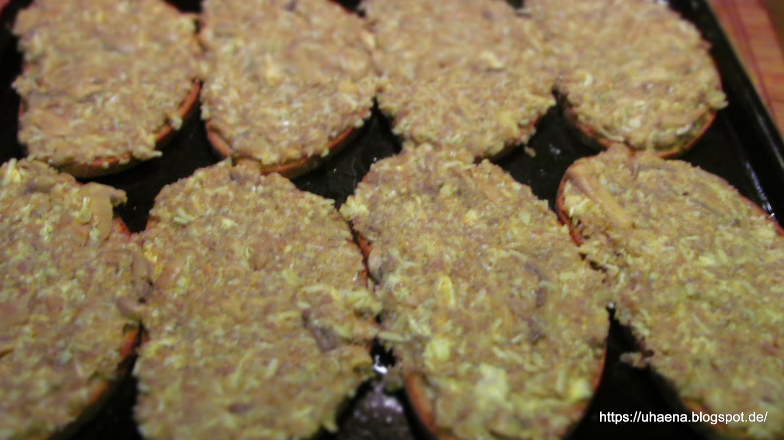 • Разпределям сместа равномерно върху всички филии, размазвам навсякъде и притискам с ръка.